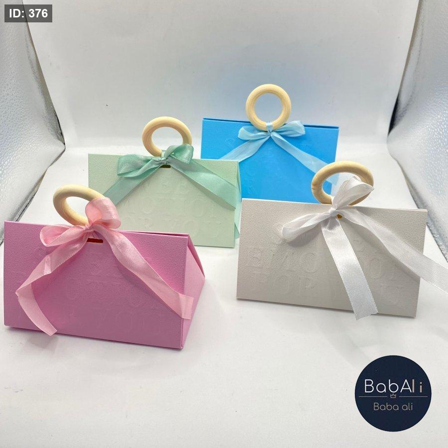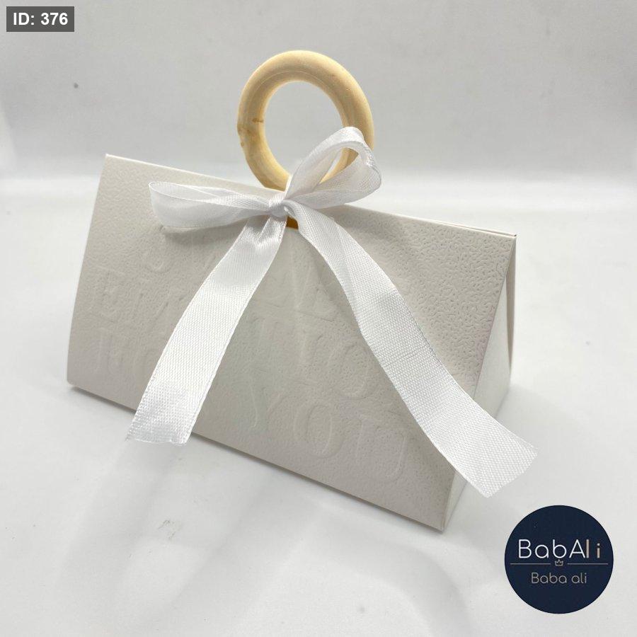 علبة كرتون شكل هرم مع حلقة خشب و شبرة 12 قطعه