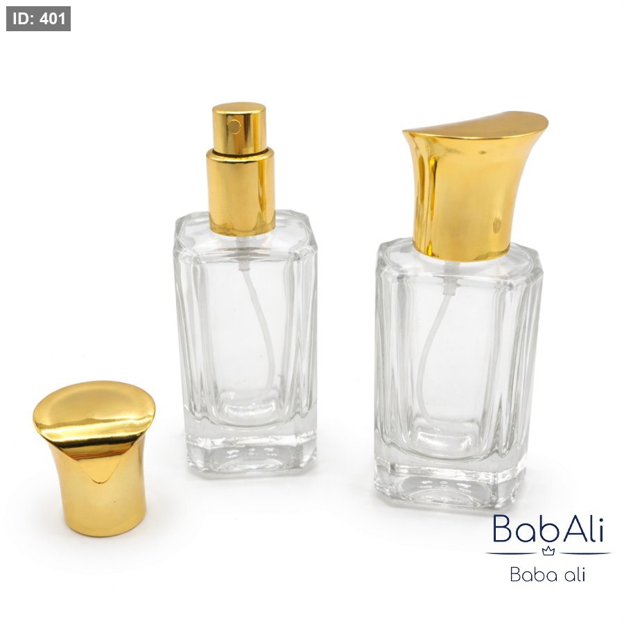 زجاجة عطر فارغة مع غطاء ذهبي