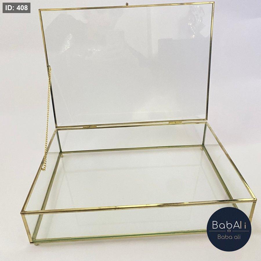صندوق زجاج-شكل مستطيل-سادة لون ذهبي الحجم الكبير