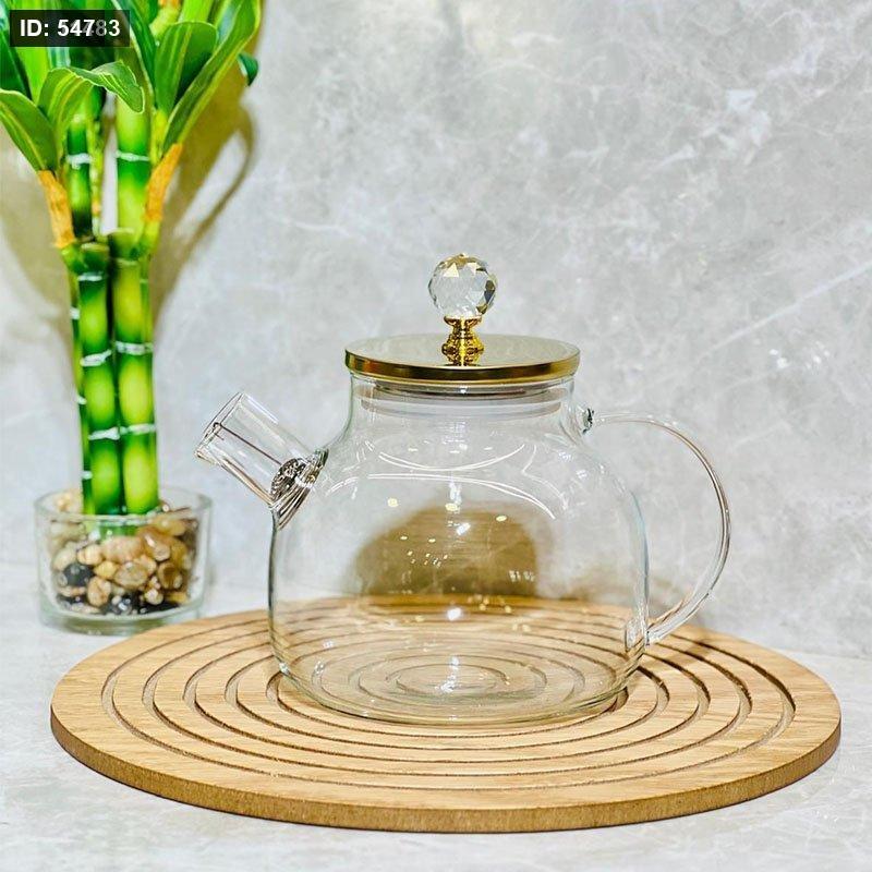 ابريق شاي 1 لتر زجاج سادة غطا ستانلس ذهبي