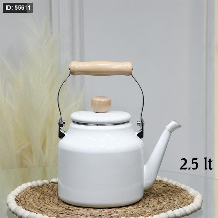 براد شاي زينكو 2.5لتر ابيض يد ستانلس ملبس خشب