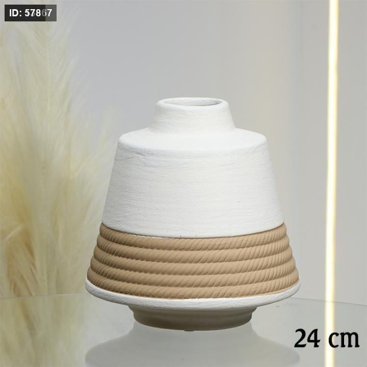 فازة جبص بيج 24سم شكل جرة قاعدة مجدول بني