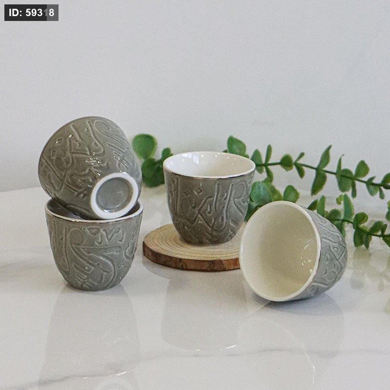 طقم فناجين قهوة سادة /12 بورسلان زيتي مكتب