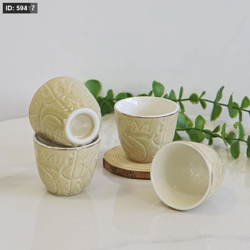 طقم فناجين قهوة /12 بورسلان سادة مكتب عسلي